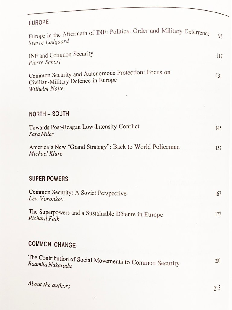 One such series had the theme of Common Security – inspired by the Olof Palme Commission on that subject; another was a series of lectures by Western/US scholars and Russian counterparts.